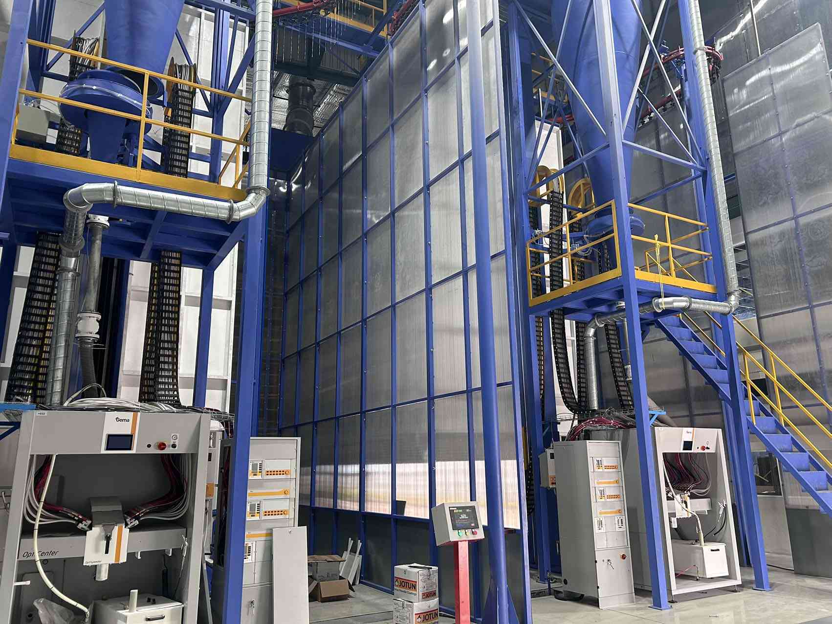 2)Technical Description:Loading ,pre-treatment ,drying , powder coating, Curing ,unloading .