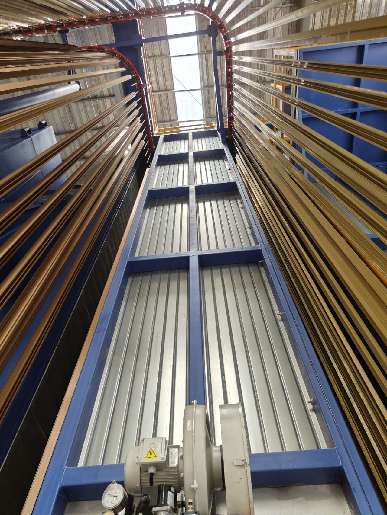 8,The dried profiles enter the spray booth at a chain speed of 1—2.5/m for spraying(The chain speed is adjustable according to the needs of customer).