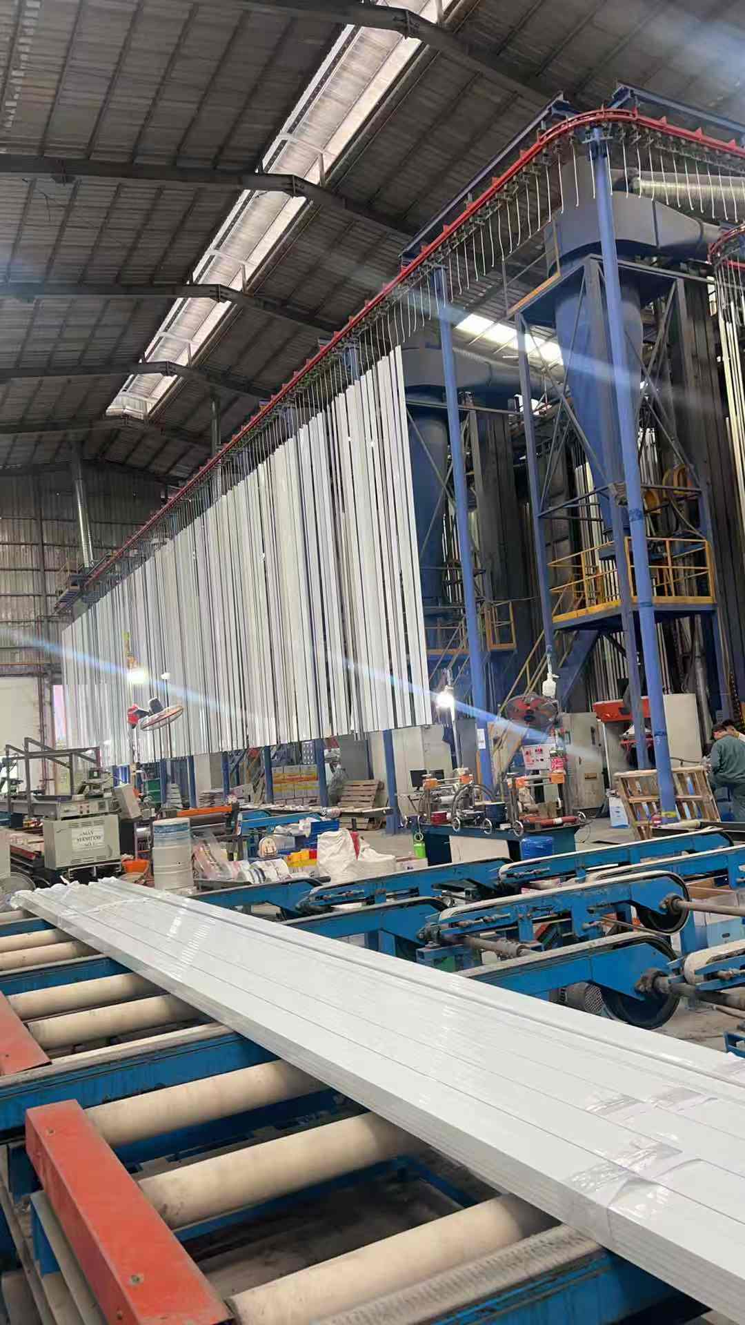 11, De profielen die zijn uitgehard en vrijgegeven, worden als geheel verwarmd. Raak het oppervlak van de profielen niet met blote handen aan. Na afkoeling kunnen ze van de plank worden verwijderd. Controleer na het verwijderen van de plank de gespoten producten. Het oppervlak moet glad zijn en de coating moet uniform zijn. markeringen, sinaasappelschil en andere verschijnselen, en kan dan worden verpakt na het doorstaan van professionele kwaliteitsinspectie.